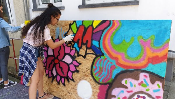 Die Begeisterung spiegelte sich in ihren Graffitis wieder, das Ergebnis sind sehenswerte, farbenfrohe Graffitis.