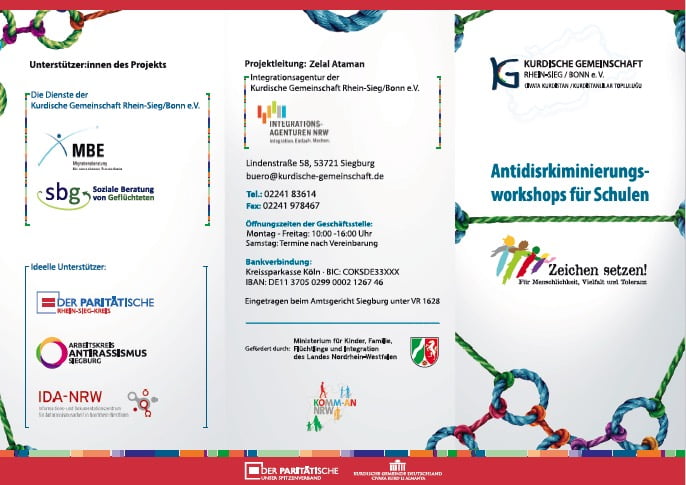 Die Integrationsagentur der Kurdischen Gemeinschaft bietet insbesondere für Schulen Antidiskriminierungsworkshops zu den verschiedenen Themenbereichen Rassismus (auch innerhalb der Migrationsgesellschaft), Antisemitismus, Antiziganismus, Ableismus und Klassismus an.