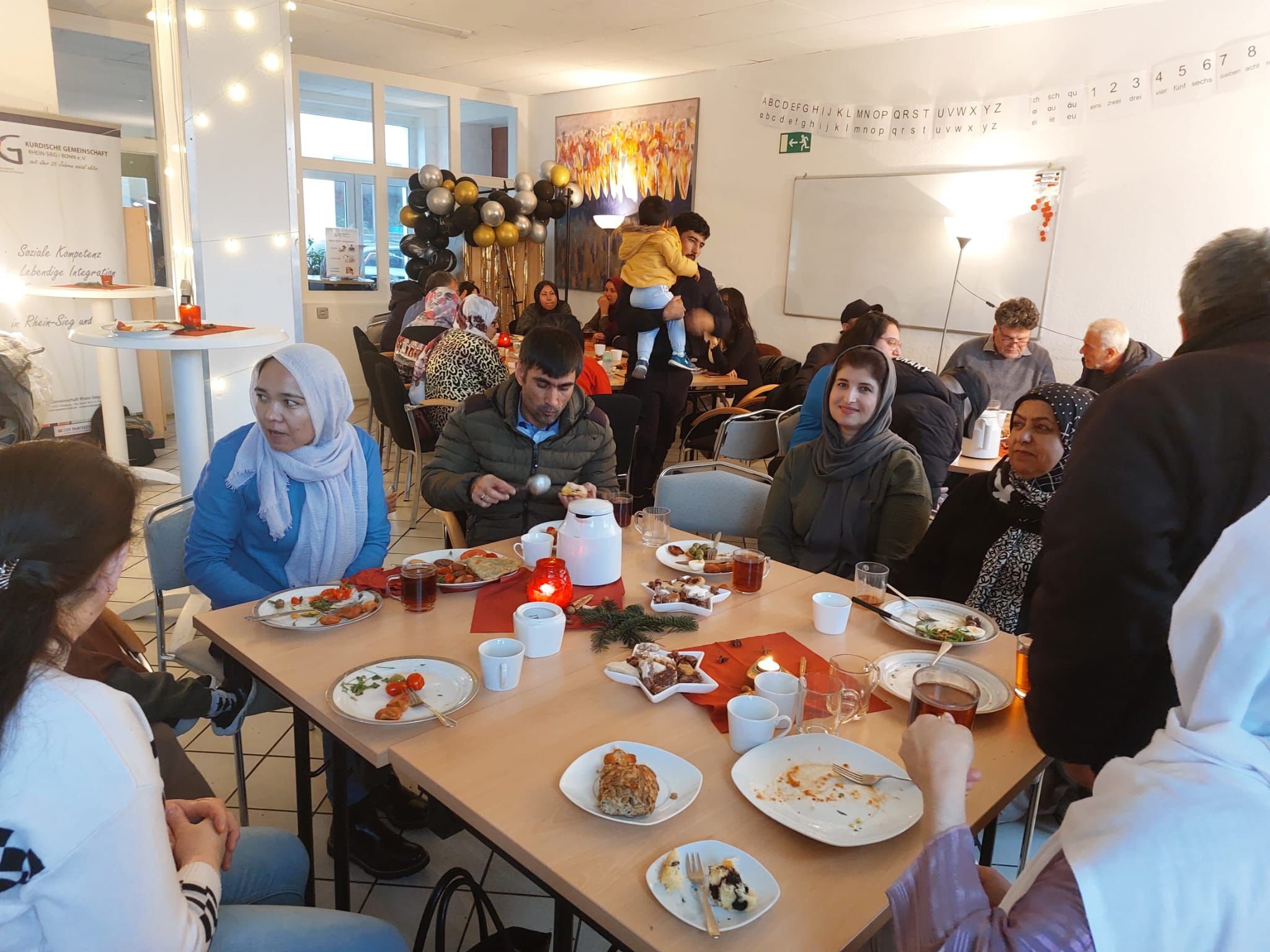 Das Jahr ist abgeschlossen und die Kurdische Gemeinschaft feiert den Abschluss mit den Teilnehmer:innen des Deutschkurses, der von den langjährigen ehrenamtlichen Kräften durchgeführt wird. Das kulinarische Buffet rundete die Weihnachtsstimmung ab. Wir bedanken uns recht herzlichen bei unserem ehrenamtlichen Team, die uns immer tatkräftig unterstützen und wünschen eine schöne Weihnachtszeit.